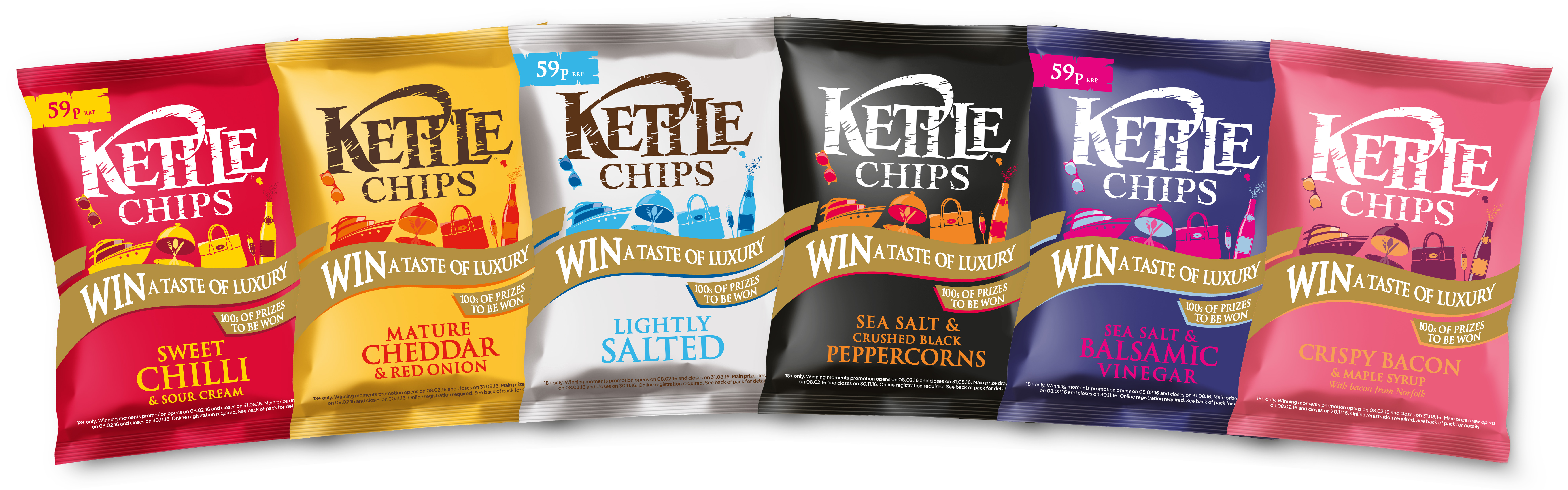 In February 2016, Kettle Chips will launch the ‘Win a Taste of Luxury’ competition on its full 40g range, including 4 price marked packs. For the third year running, the handy pack promotion will run during the spring. Prizes range from Fortnum & Mason hampers, to designer handbags, to a five star Harrods shopping trip and all entrants will also go into the grand draw to win the top prize of a glamorous Monaco break with a private yacht trip.