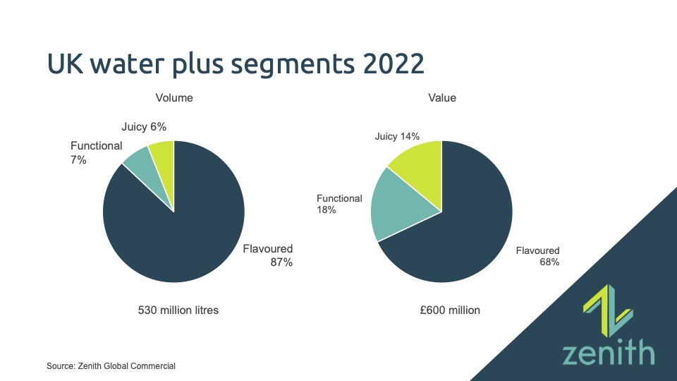 The UK market for flavoured and functional waters grew faster than for plain water in 2022, according to the latest UK Water Drinks Market Reports from industry experts Zenith Global Commercial.